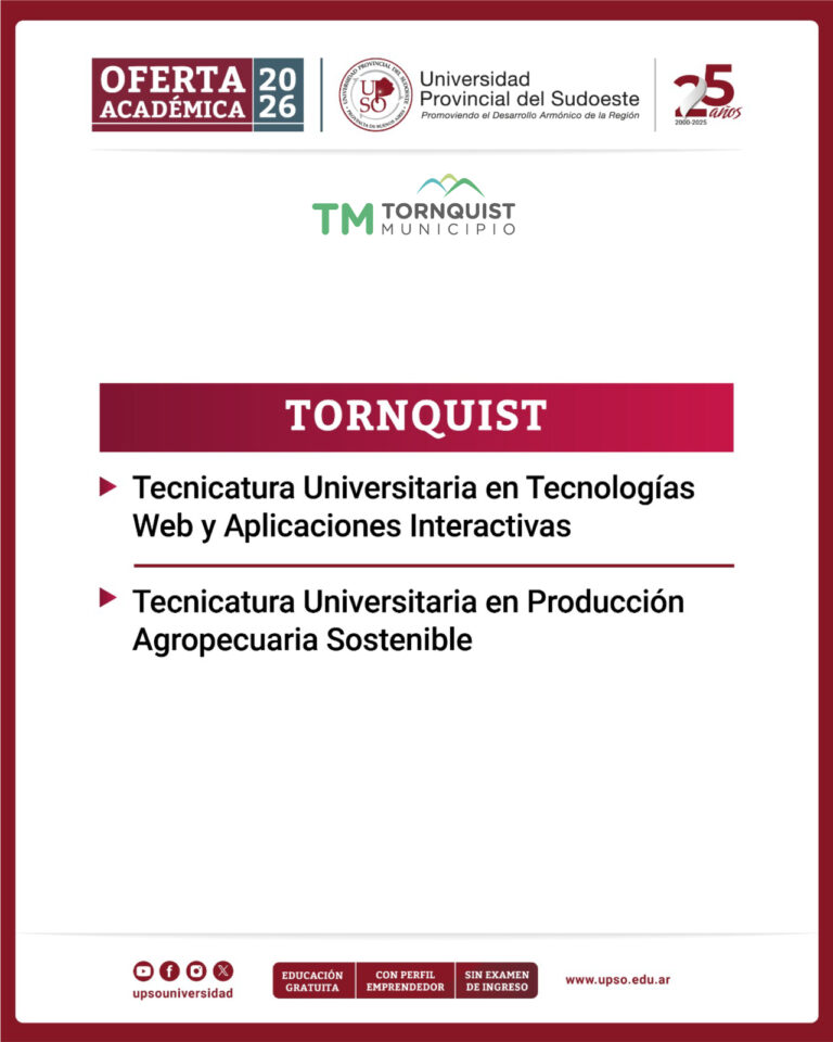 Tornquist Municipio, junto a la Universidad Provincial del Sudoeste (UPSO) informa que, a partir del…